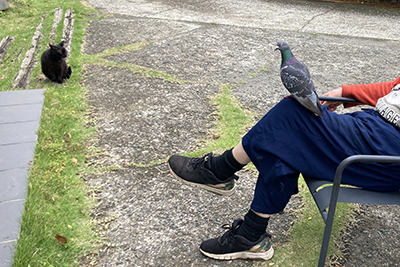 美術予備校時代の先生の展覧会を観に横浜へ行く。春節で賑わっている中華街で食事をして山下公園を散歩する。頭にカモメがとまる。帰宅して明日は登校する小学生の終わっていない宿題の分数を手伝う。