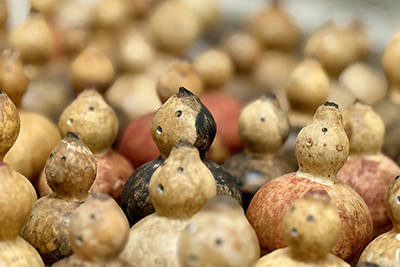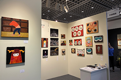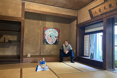 マクラさんや、仲間たちの作品を画像や画集で見せてもらう。作品を通すと、急に気持ちの距離が縮まる。作品交換しよう!ということになり麻生の作品と引換にマクラさんの新作(灰色)を手に入れる!