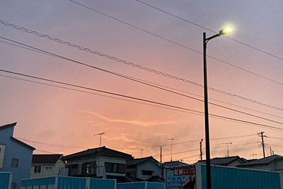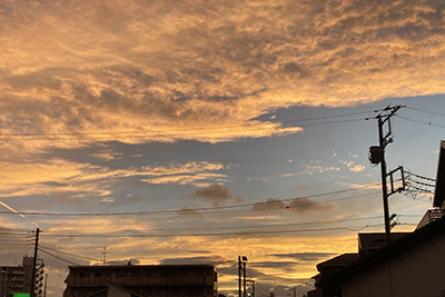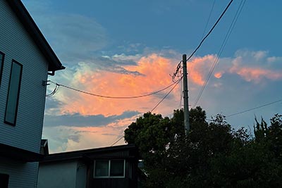 童謡を50曲集めた本『言葉と心をはぐくむ0歳からのうたえほん』の、3曲分の絵を麻生が描きました。その本が完成して、今日は編集者の人が本と原画を届けにきてくれました。帰り道は童謡みたいな夕焼け。