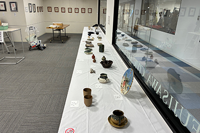 藤沢市の公民館サークル連合美術展の設営で、市民ギャラリーへ。市内の公民館サークルの年に一度の合同展です。陶芸サークル仲間六人で参加。いつもと違う場所で会うとちょっとよそゆきでたのしい。