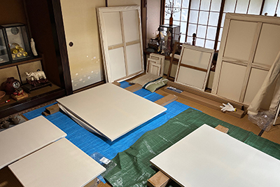 来年の展覧会に向けて寒くならないうちにキャンバス作りをしよう、と考えたのが約一ヵ月前。それからモタモタして、やっとキャンバス作業場を準備して作業を始める。すっかり寒くなってきたけれど。