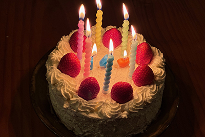 白内障手術の日。夜は誕生日会。誕生日とかマジうれしくないんだけど、とか言う反抗期の中学生を祝う。ロウソクを吹き消す定番写真を撮ると、暗闇に浮かび上がる眼帯の須藤でホラー写真みたいになる。