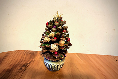 終日、陶芸サークル窯当番の日。陶芸仲間から手作り松ぼっくりツリーをもらいました。帰宅して郵便受けを見たら友人からクリスマスカードが届いていて、なんだかいっきにクリスマスらしくなりました。