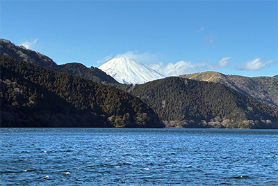 冬休み、どこにも行けなかったという意見があり(出かけたと思うけど)、冬休みのレジャーで箱根の温泉に日帰りで行く。強風のおかげで観光写真ではない本物の芦ノ湖からの富士山が見られました。