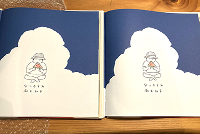 絵本の印刷の色具合を見せてもらうため東京へ。自分の絵を絵本の形にしてもらって、畑で育ててきたカボチャが馬車になった気分です。これから微調整して、さあ出発。帰り、高円寺で木版画展を観る。