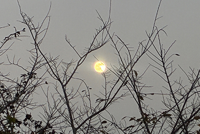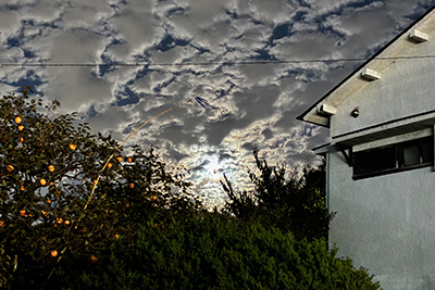 快晴の日。富士山がくっきりきれいでした。いろいろ雑用しているうちに夕方になってしまう。それからあわてて夕飯の買い物に行った帰り、建物の上に大きい月。調べたら今年初の満月だそうです〇