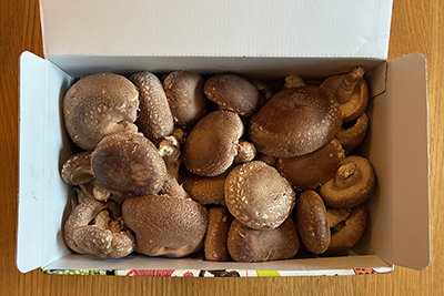 終日作業、と思っていたら反抗期の中学生が「せっかくの休みなんだからどっか行こう」と言うのでわざわざ遠出してソフトクリームを食べる。友人から自家製椎茸がたくさん届き、夜は椎茸パーティー。