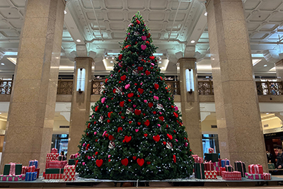 いくつか用事があって東京に行く。ウォークラリーみたいに歩く。夜、友人からクリスマスツリーの写真が届く。自分の携帯電話を見返したら、今日めずらしく寄ったデパートで同じのを反対側から撮ってた。