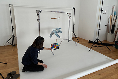 夏の展示の広報用の作品撮影。STUDIO467の熊野さんに撮影していただきました。カーテンを閉じた暗い部屋に一瞬雷みたいにライトが光ると、パソコン画面に撮影された写真が出てくる。楽しい時間。