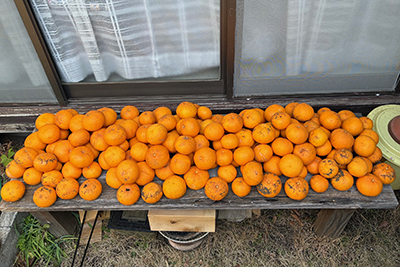 法事の準備、いつも指令を受けて手配するだけだったのが、常識も無いのに自分で決めなくてはいけない。草むしり姿の遺影とチラチラ目が合いながら額縁を磨いてみる。庭の夏みかんがやたらと採れる。
