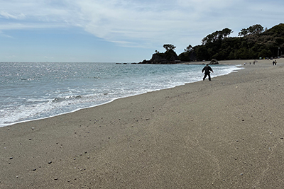 雪国の友人が来たのでカラカラに晴れた湘南の海を一緒に見に行く。ここしばらく描いている絵がそろそろ完成しそうで、絵から離れて出かけていてもそわそわして、海に絵の構図が重なって見える。